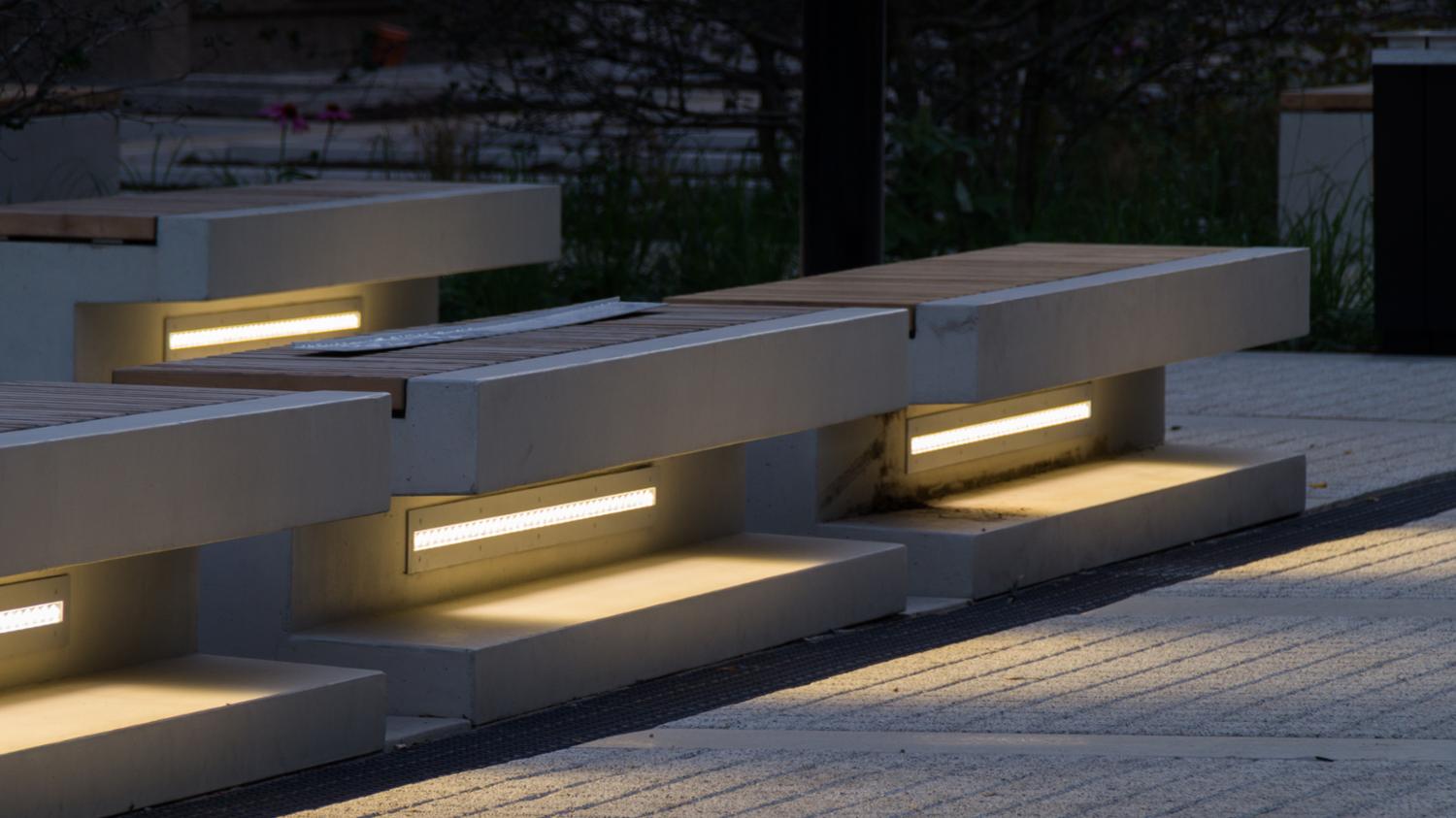 Поддержка сложных форм и светового дизайна: например, волнистые скамьи с градиентной подсветкой или светящиеся узоры с городской культурной символикой, интегрированные в спинки.